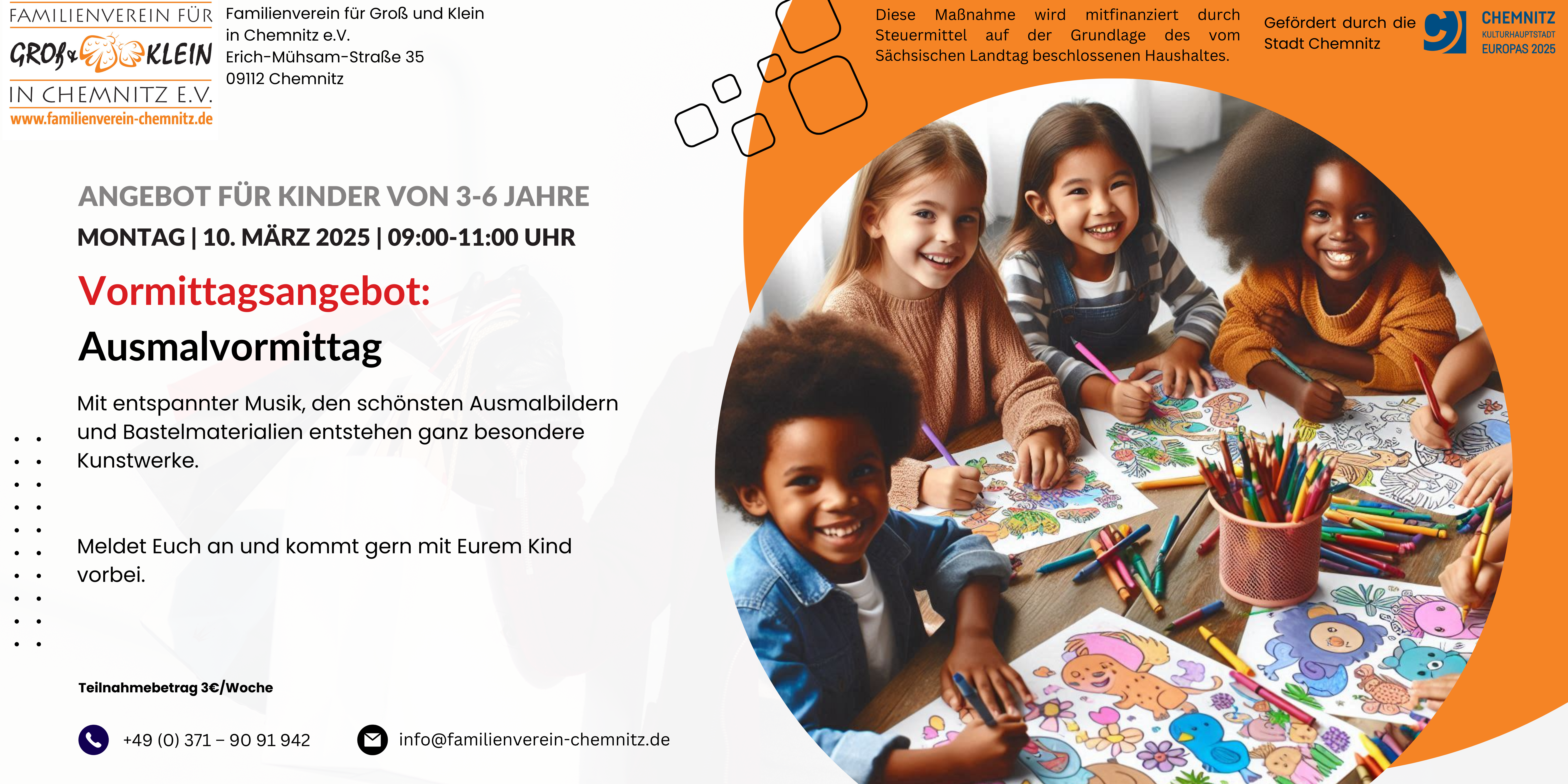 Mit entspannter Musik, den schönsten Ausmalbildern und Bastelmaterialien entstehen ganz besondere Kunstwerke.